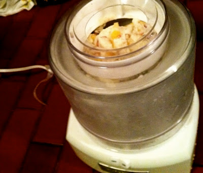 {after an hour, pour mixture into the ice cream maker for 20 mins}